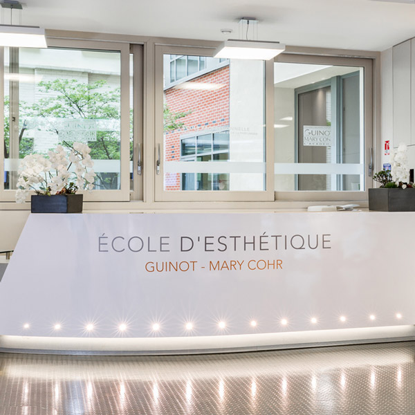 Guinot Beaueticianul salută clienții și prezintă metode de tratament exclusiv într-un mediu profesional.